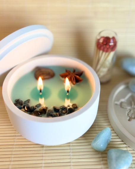En Alma en Cera creamos espacios a los que apetece volver. Cuando ves una vela encendida junto a una taza de té o un libro abierto, no es una imagen casual: es una invitación a bajar el ritmo y a convertir tu hogar en refugio.Nacemos en Valencia y trabajamos de forma artesanal con cera vegetal,mechas de algodón orgánico, fragancias exquisitas y colorantes de origen vegetal. Nuestros productos son veganos, no testados en animales y creados con respeto por la naturaleza,porque cuidar de ti también implica cuidar el entorno que te rodea.Cada pieza se elabora sin prisas, una a una. No hay dos iguales, igual que no hay dos personas iguales.