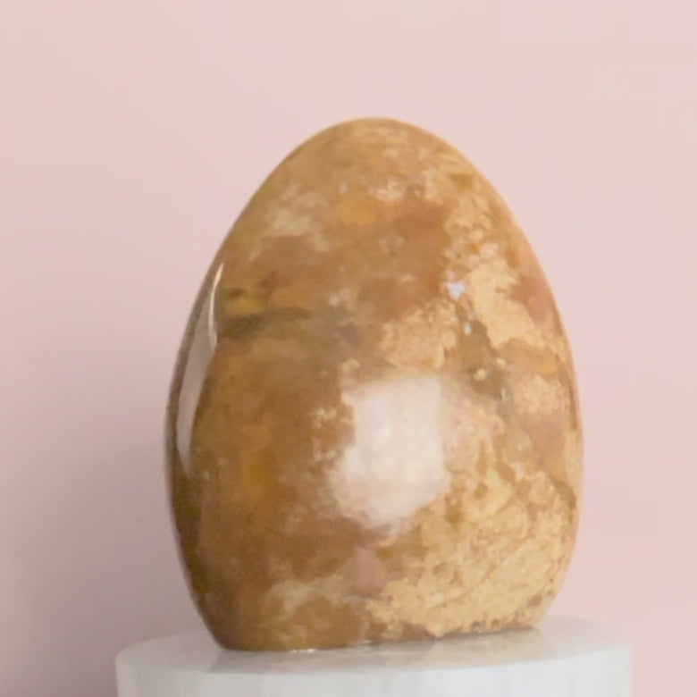 El Jaspe Amarillo está profundamente vinculado a la energía de la tierra y la claridad mental. Ayuda a organizar pensamientos, fortalecer la toma de decisiones y aportar una sensación de seguridad tranquila. En este monolito, su energía se manifiesta de manera constante y envolvente, ideal para etapas en las que necesitas afirmar tu dirección sin rigidez, con convicción y calma.